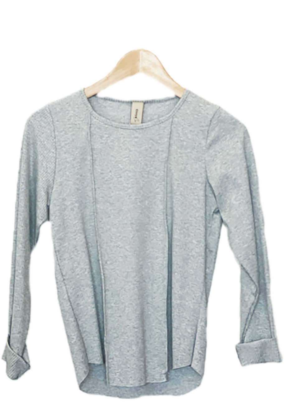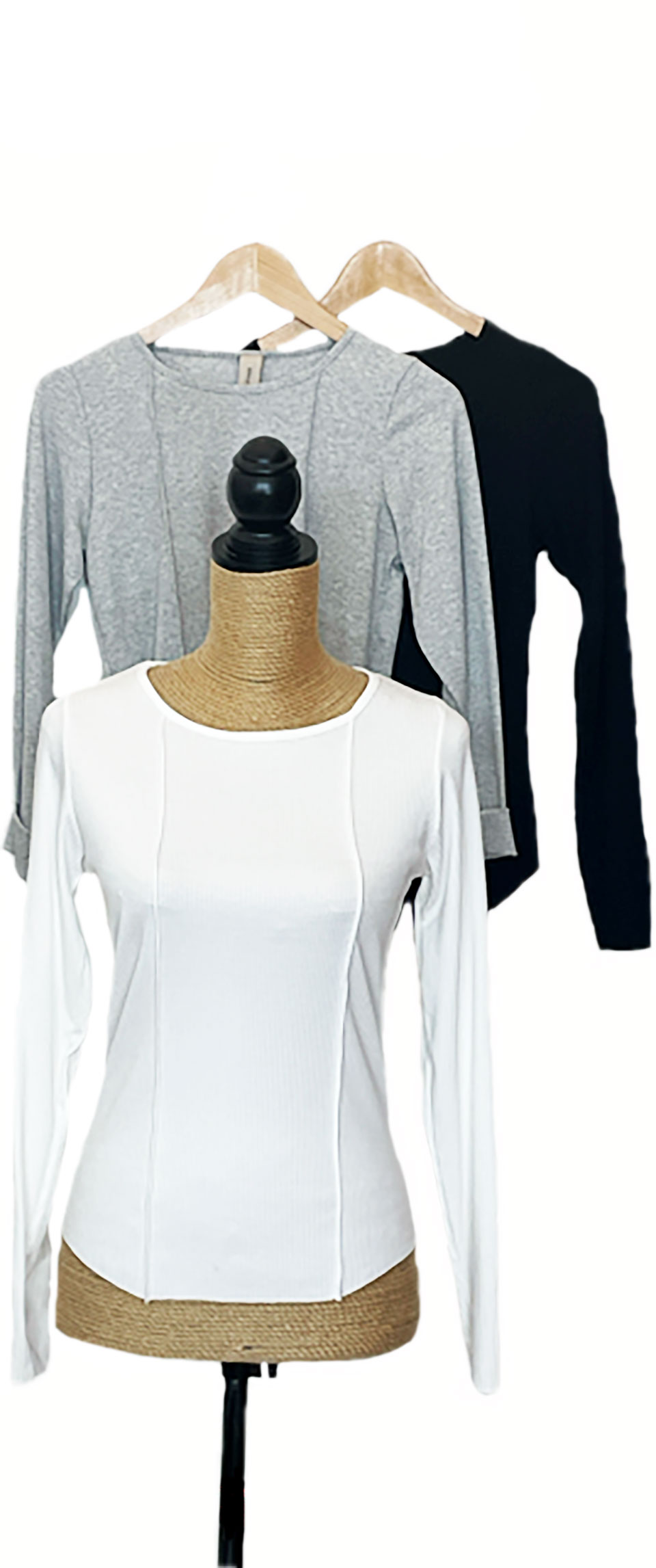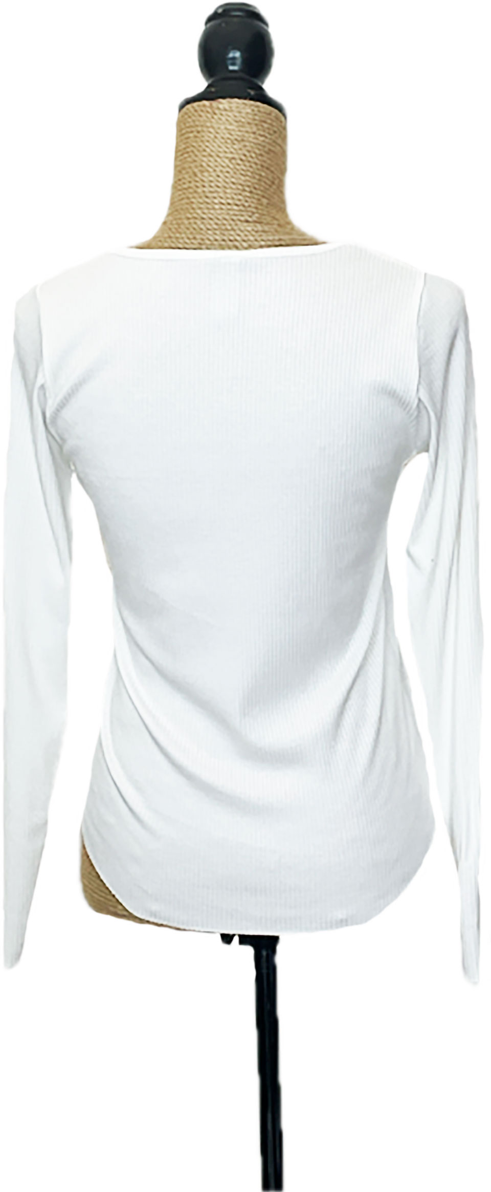 Camiseta de cuello redondo de manga larga. Tiene un dos relieves (como dos líneas) en la parte delantera de la camiseta que hace que tenga un toque original y moderno. Una prenda que no puede faltar en tu armario para esta época.