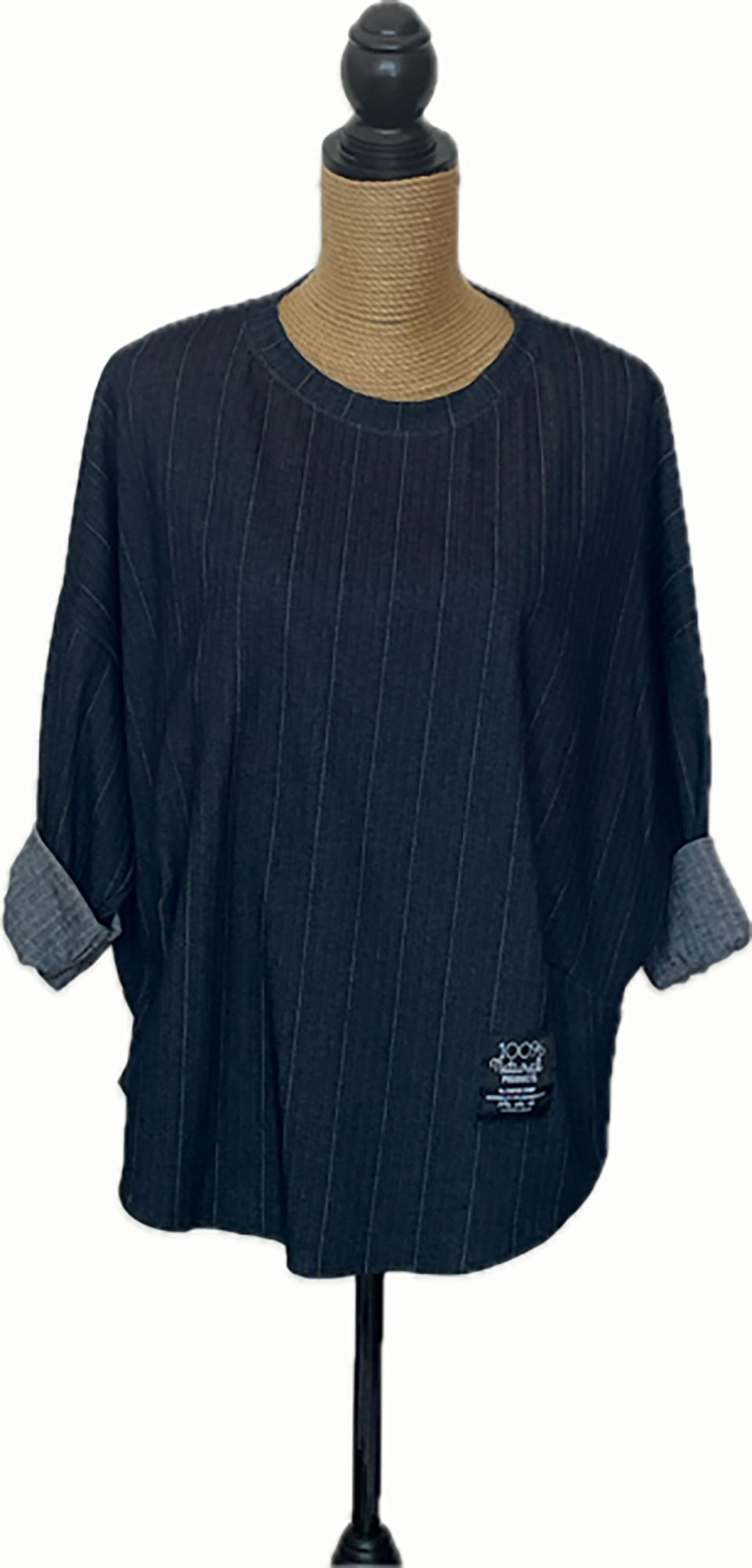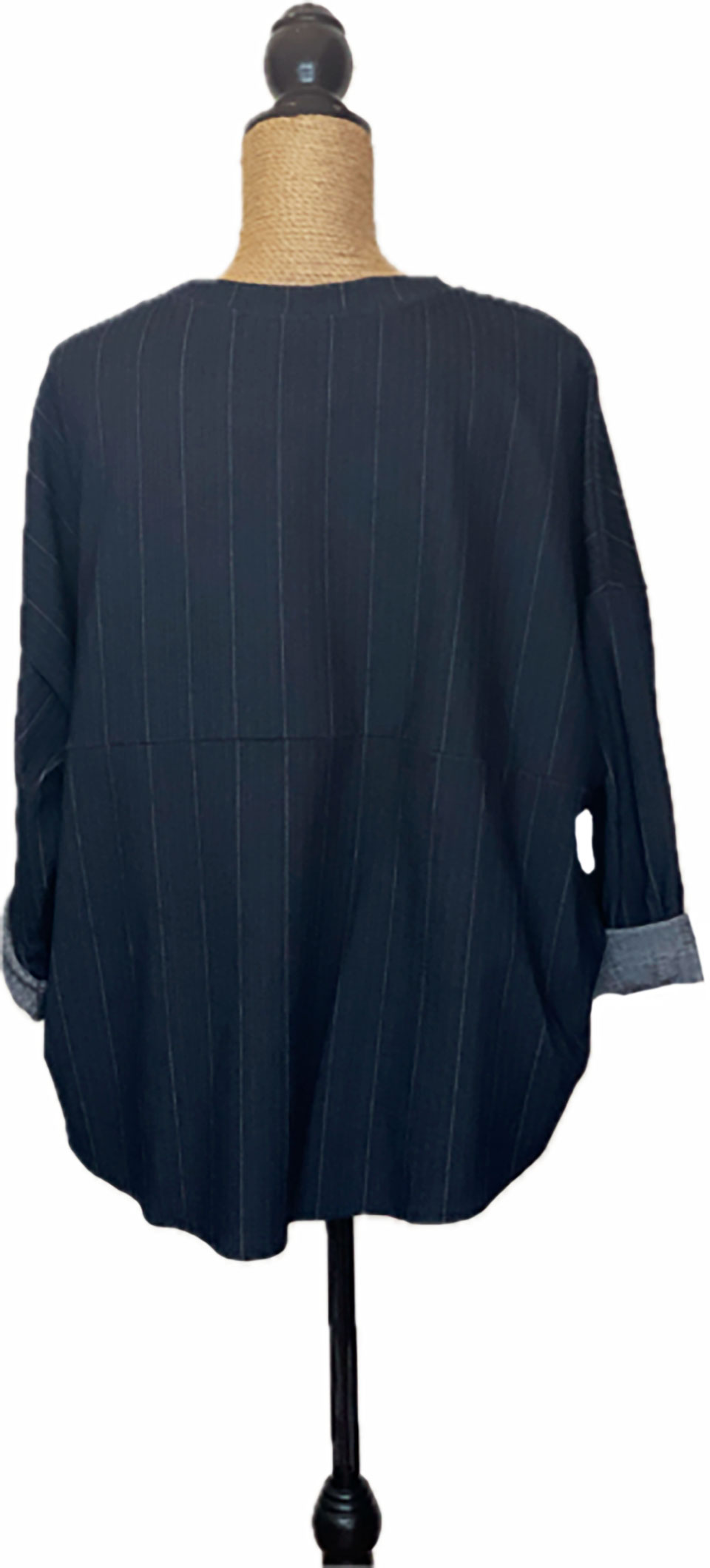 Camiseta / jersey azul marino con rayas discretas. Camiseta oversize para darle un toque moderno y casual. Una prenda que puedes utilizar en tu día a día.