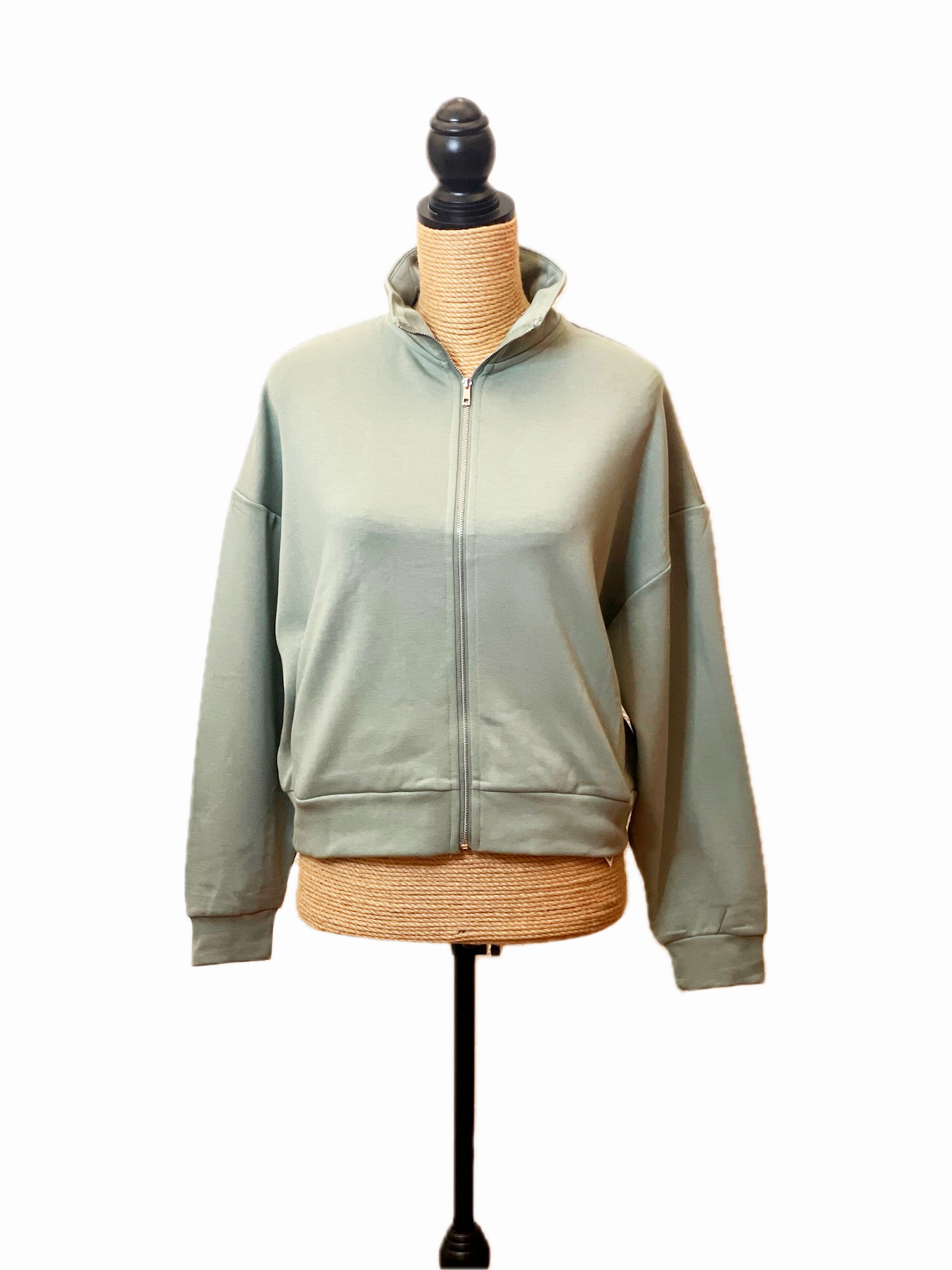 Sudadera / Chaqueta de cuello subido y cierre con cremallera. Bolsillos laterales, cintura elástica y mangas acabadas en puño. Tejido muy agradable el cual hace que se pueda llevar para el gimnasio como para completar un outfit casual.